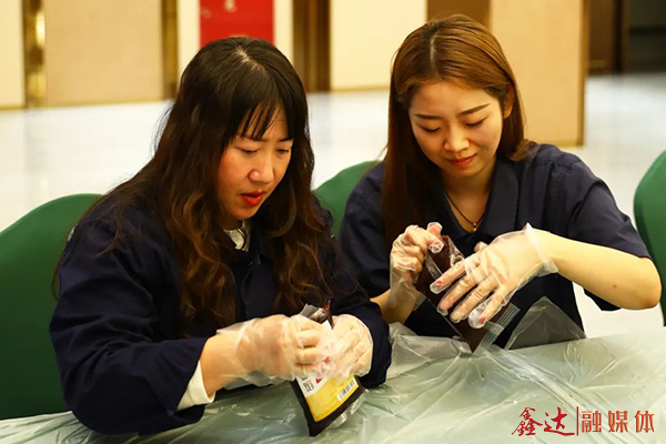 Looking at all kinds of materials on the table, we are eager to try, put on gloves, and face, flat, round, press mold, mold, with tacit understanding, everyone incarnated mooncake division, each other to explore their own production methods and skills, with their own works to welcome the arrival of the festival, the whole event site laughter.